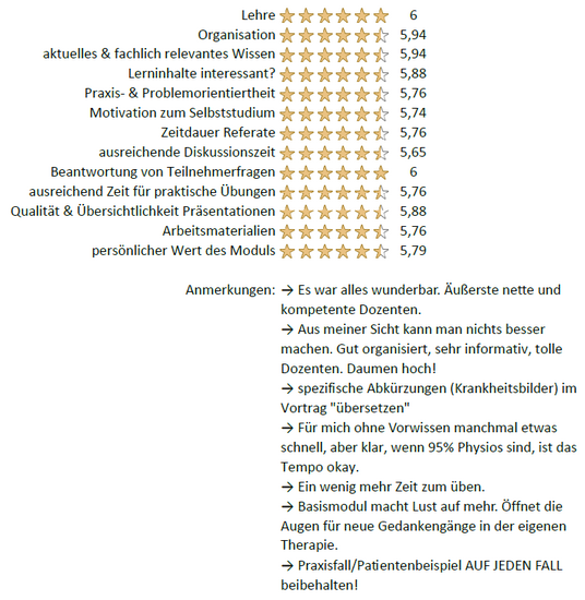 Auf der Basis jahrelanger Lehrerfahrung mit unserem Kurs „Applied Kinesiology“ haben wir das neue Curriculum so aufgebaut, dass die Philosophie und die für die sofortige Anwendung entscheidenden Inhalte gleich zu Beginn gebracht werden. Schon nach dem ersten Modul gehen die Teilnehmer mit 16 Muskeltests nach Hause, die einen Gesamtüberblick vermitteln. Zudem gibt es die Übersicht über die häufigsten und damit wichtigsten Störfaktoren, die hinter Beschwerden stecken können. Dies ermöglicht Therapieerfolge vom Start weg. Die so gemachten Praxiserfahrungen können in den folgenden Modulen mit einfließen.